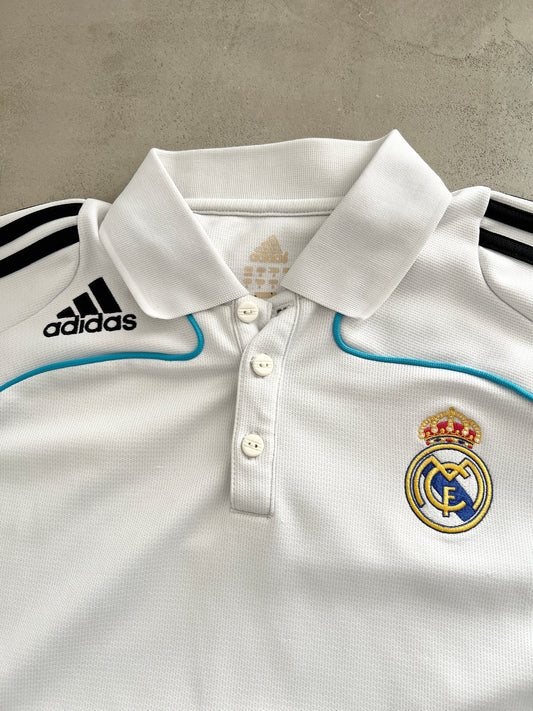WHITE/BABY BLUE REAL MADRID POLO JERSEY - 2000S - L/M