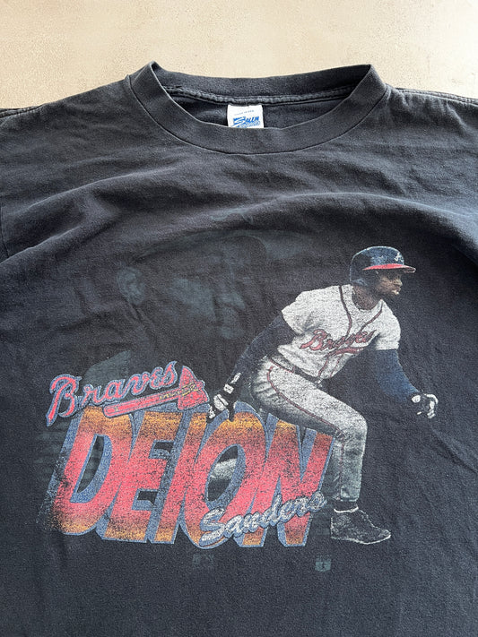 FADED BLACK DEION SANDERS BASEBALL TEE - 1990S - L/M