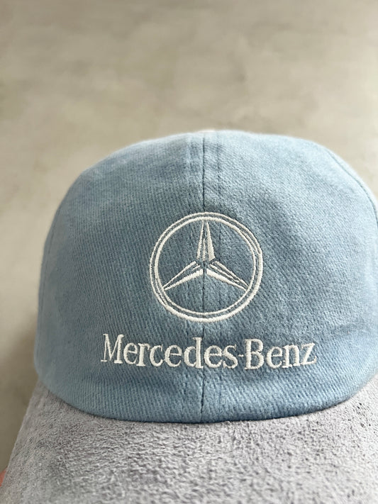 BABY BLUE/GREY MERCEDES BENZ CAP - 1990S