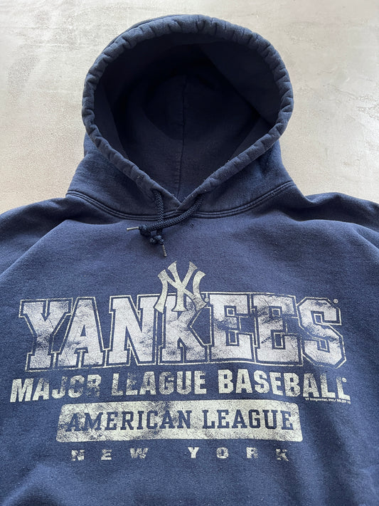 FADED NAVY YANKEES HOODIE - 1990S - L/XL