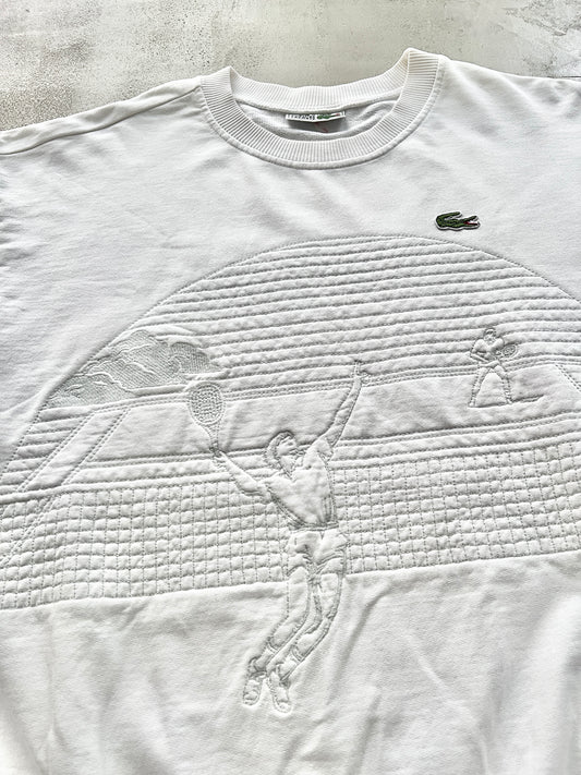 WHITE LACOSTE TENNIS SWEATER - 1990S - L/M