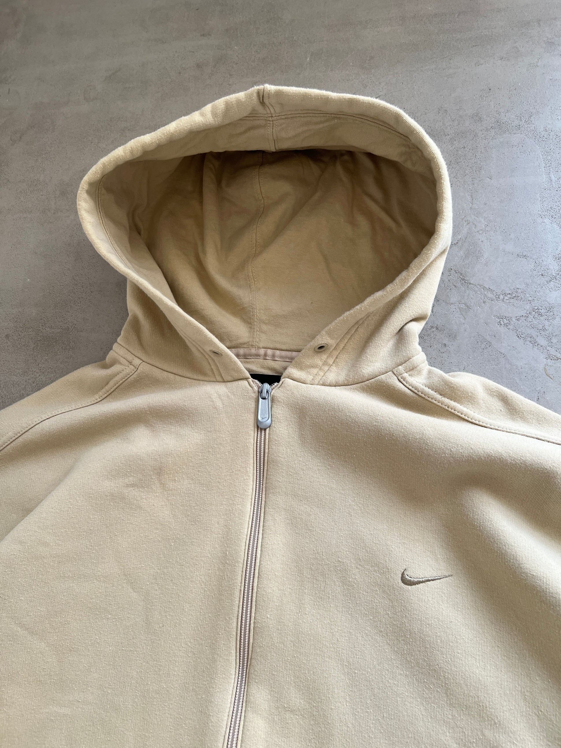BEIGE NIKE ZIP UP HOODIE - 1990S - XL/XXL