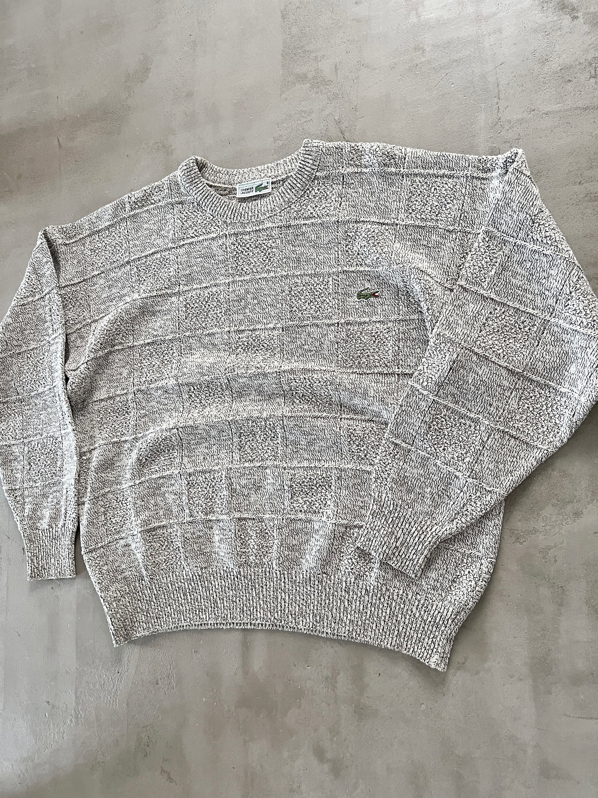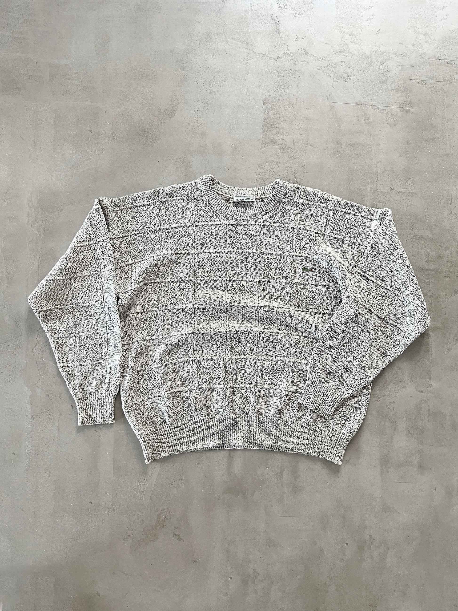 CREME/GREY LACOSTE KNIT SWEATER - 2000S - M/L