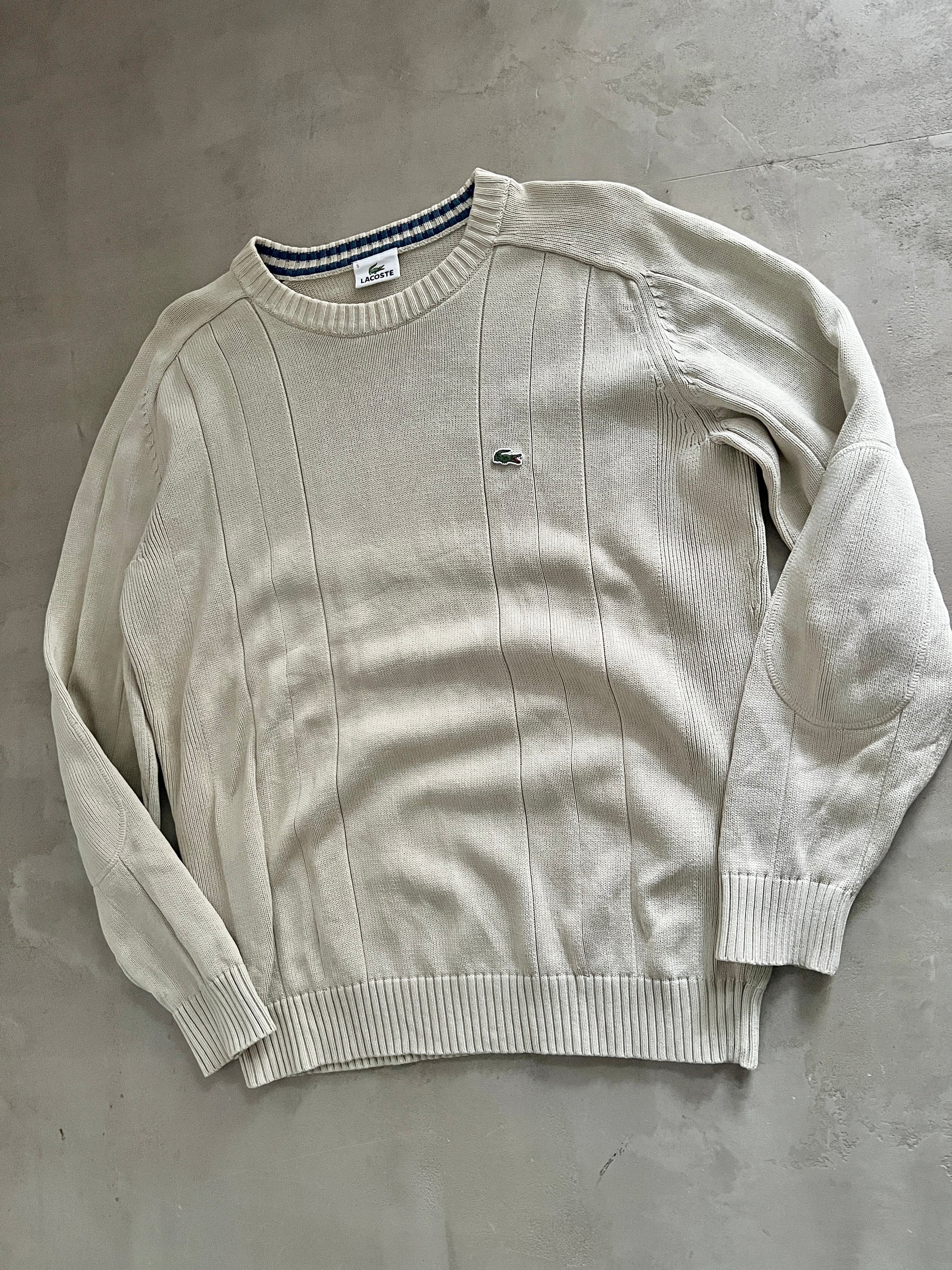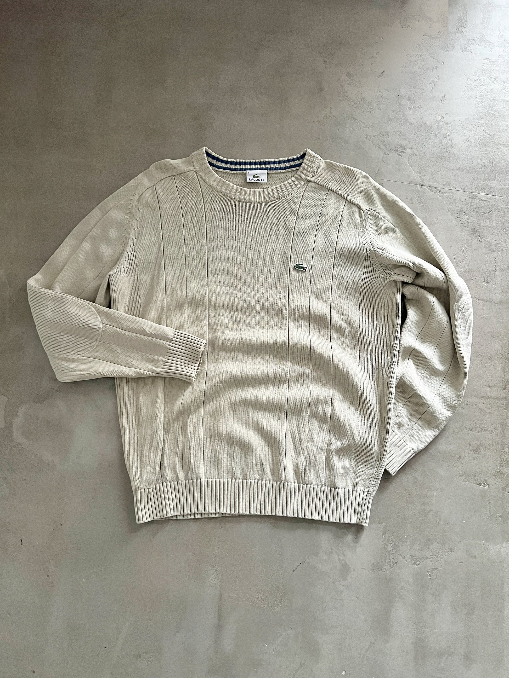 CREME LACOSTE KNIT SWEATER - 1990S - L