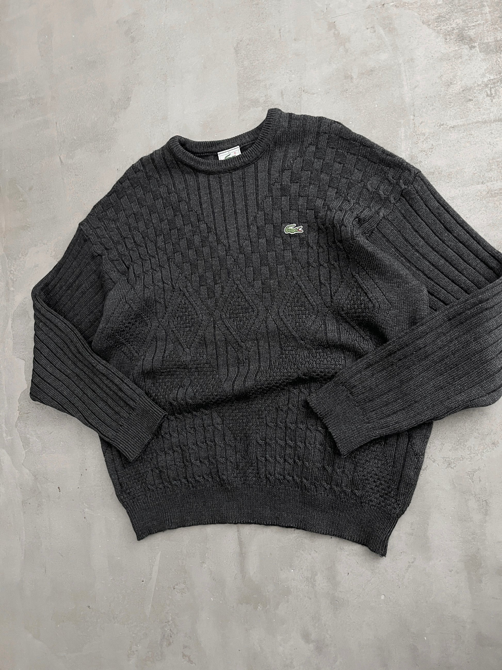 GREY LACOSTE KNIT SWEATER - 2000S - L