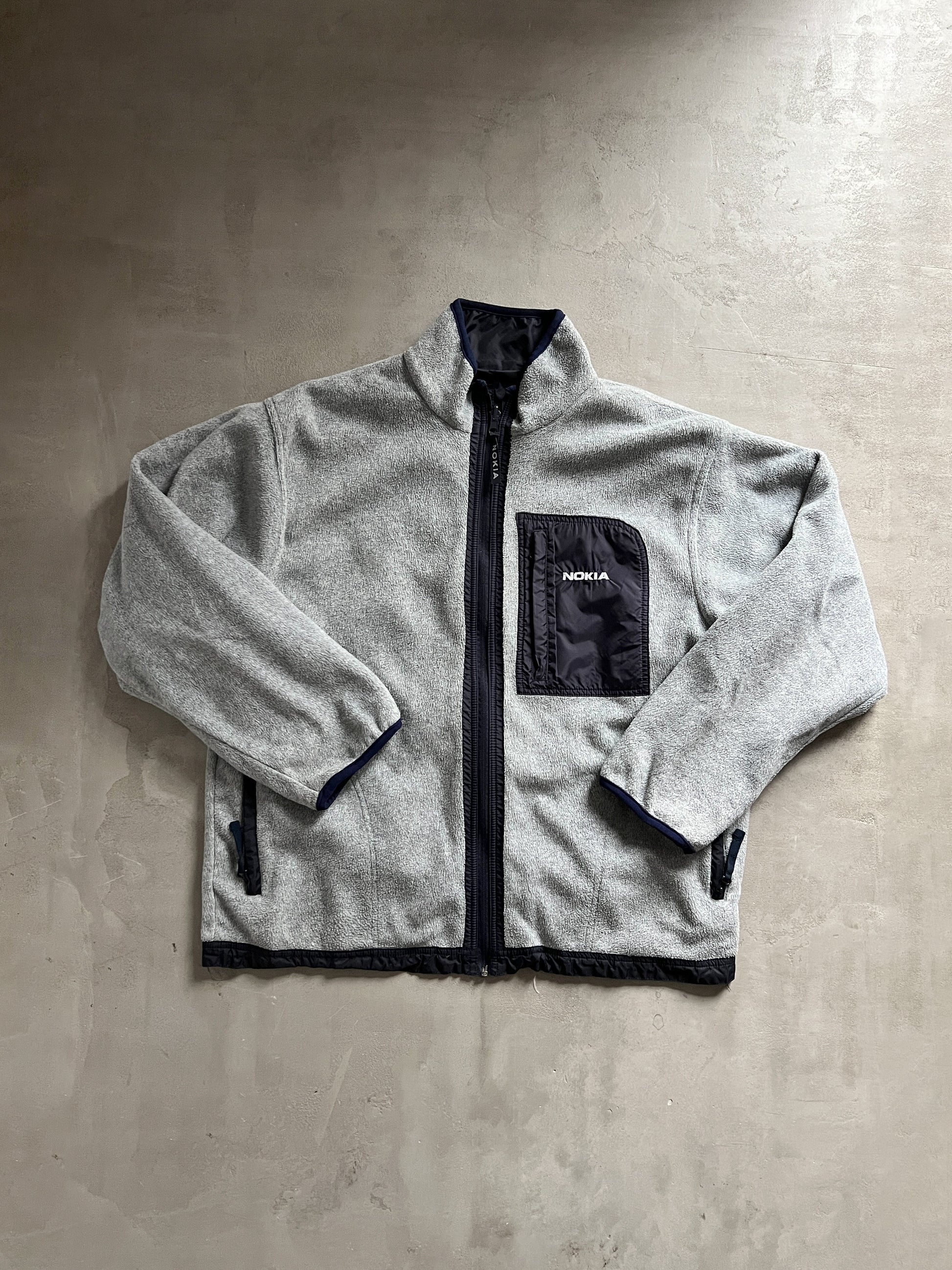 GREY/NAVY NOKIA 2 SIDE FLEECE JACKET - 2000S - XL/XXL