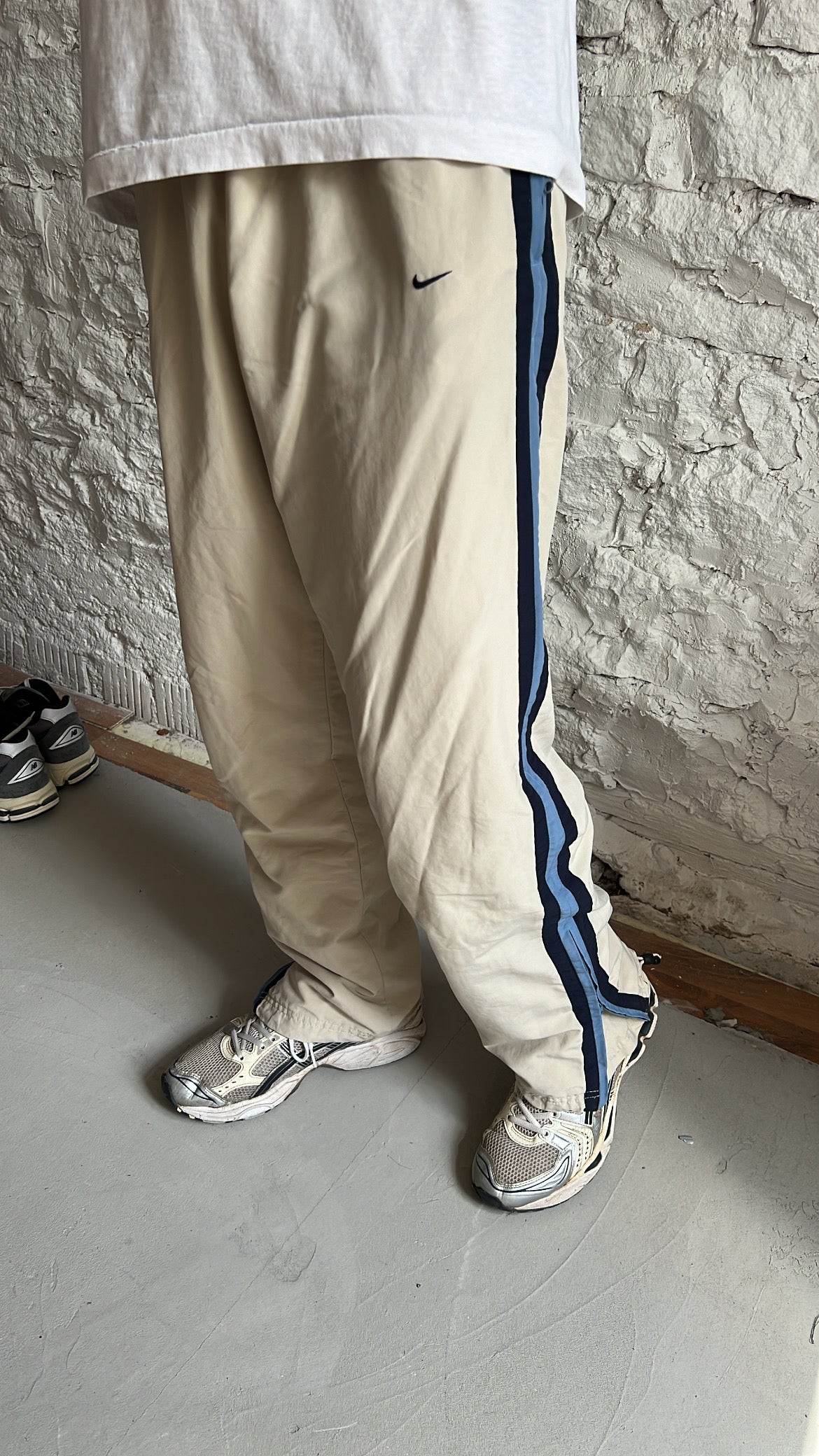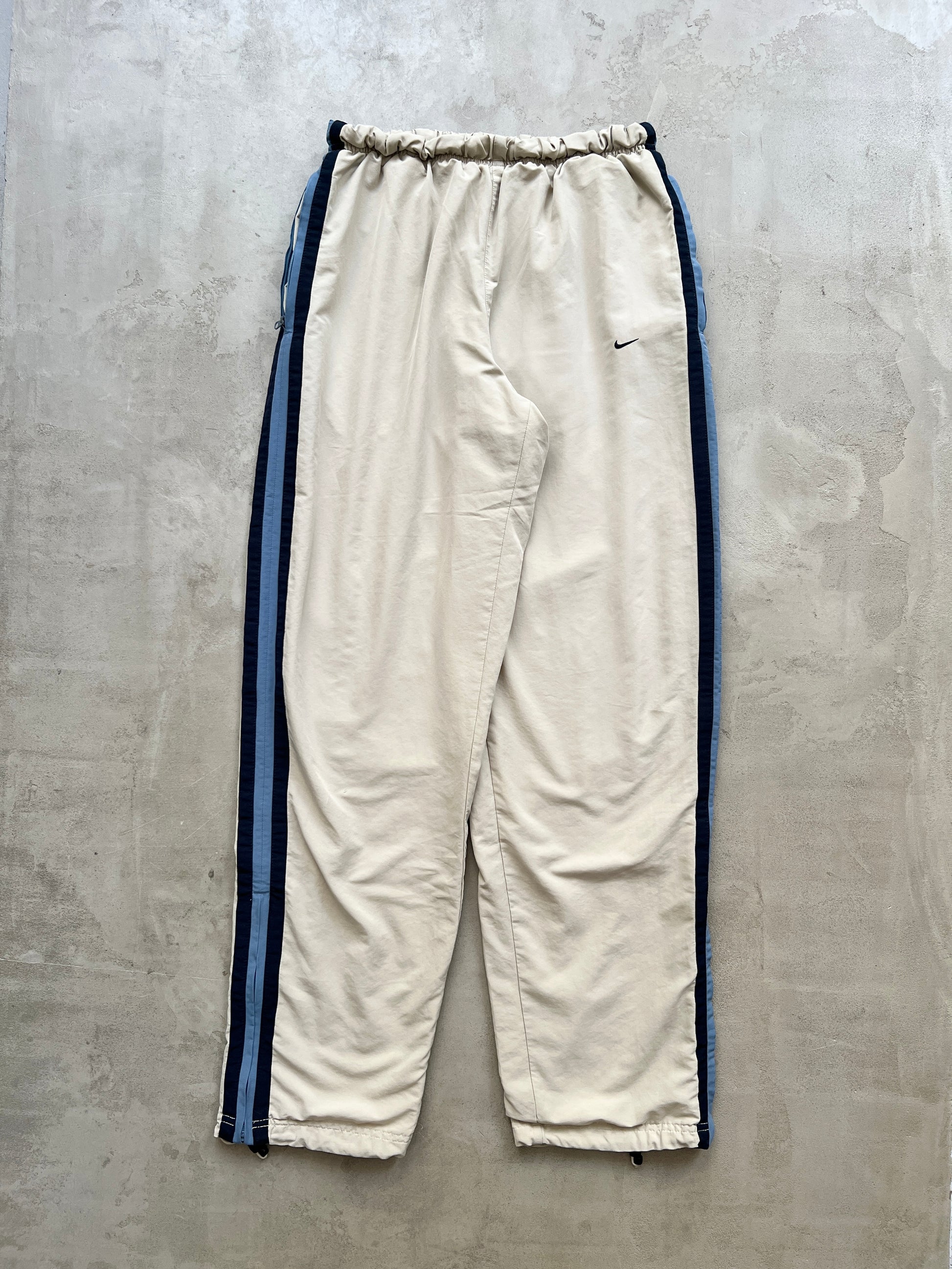 LIGHT BEIGE/BLUE NIKE TRACK PANTS - 2000S - M/L