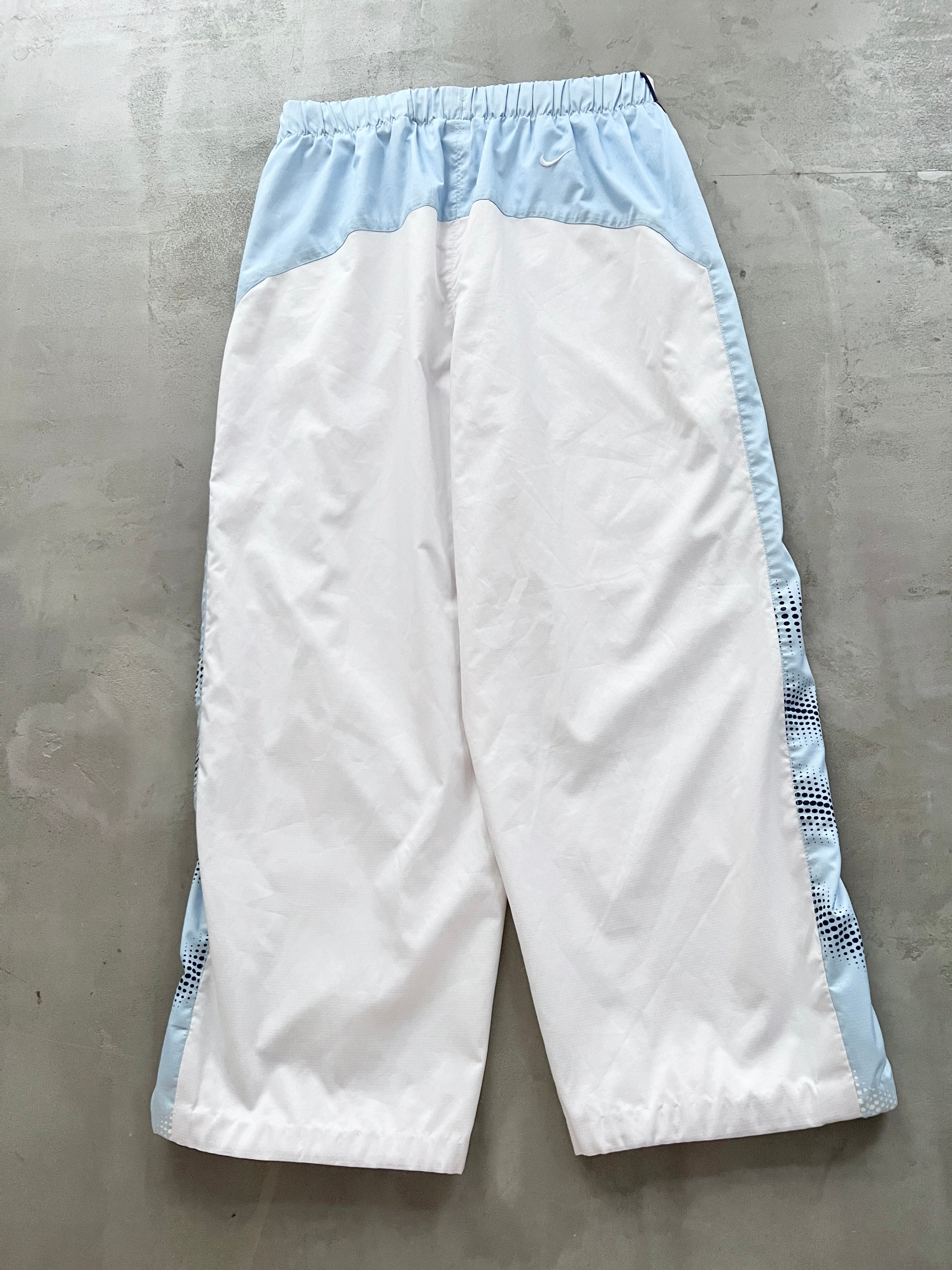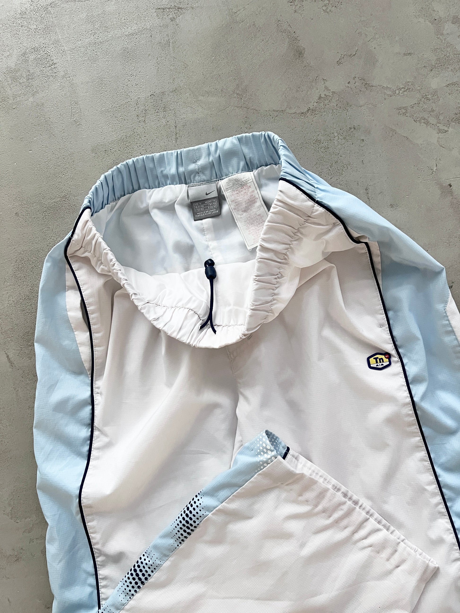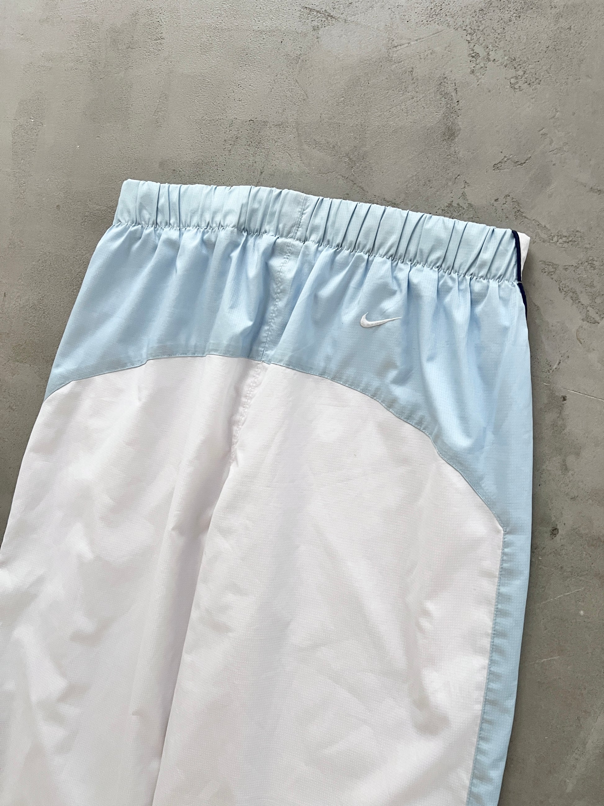 WHITE/BABY BLUE NIKE TN TRACK PANTS - 2000S - XS/S