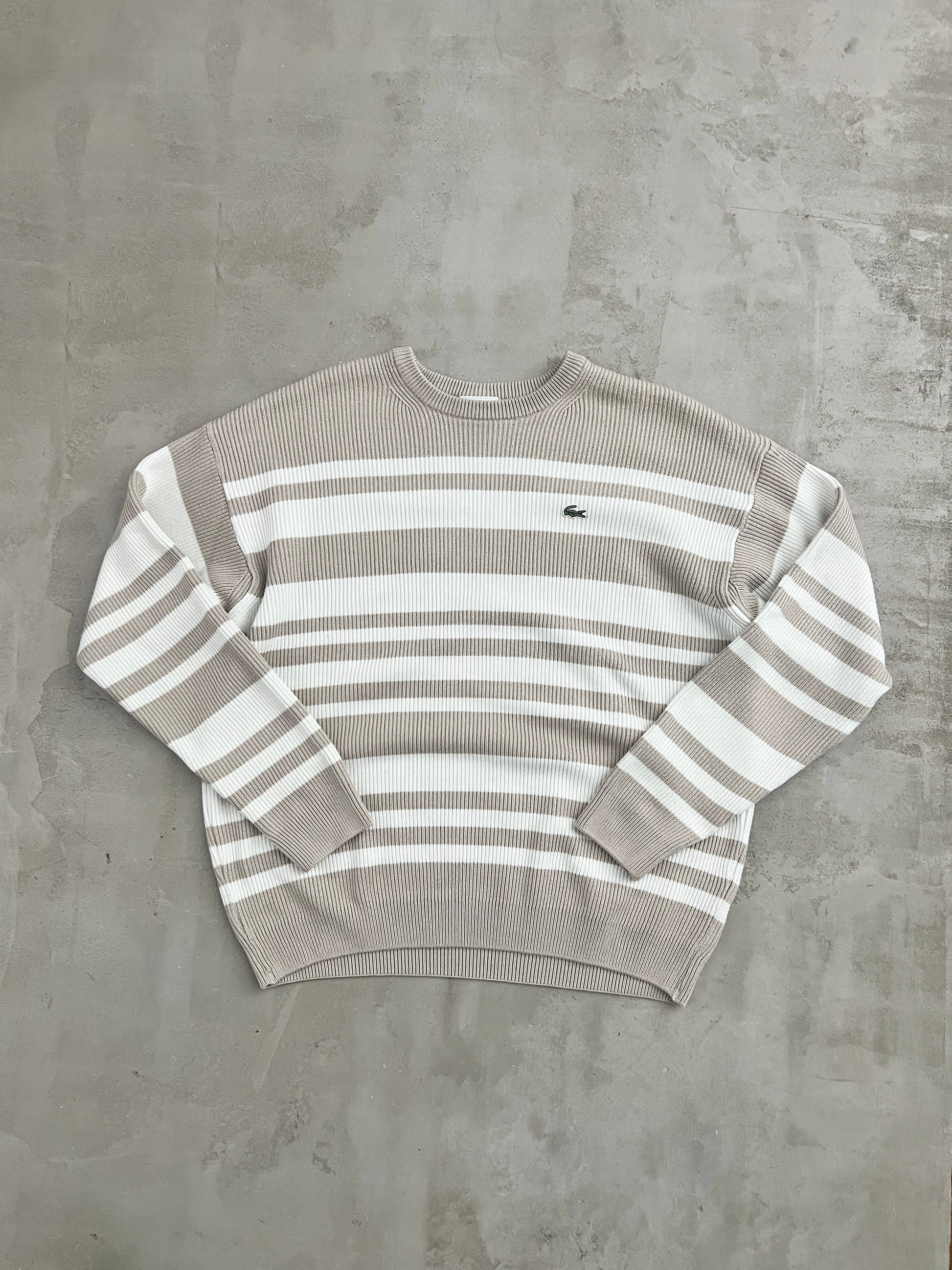 WHITE/BEIGE LACOSTE KNIT SWEATER - 2000S - M
