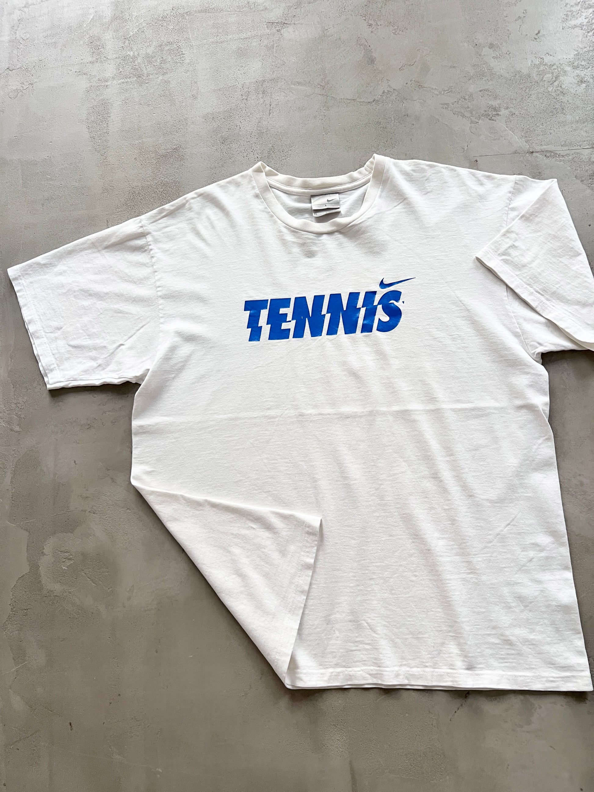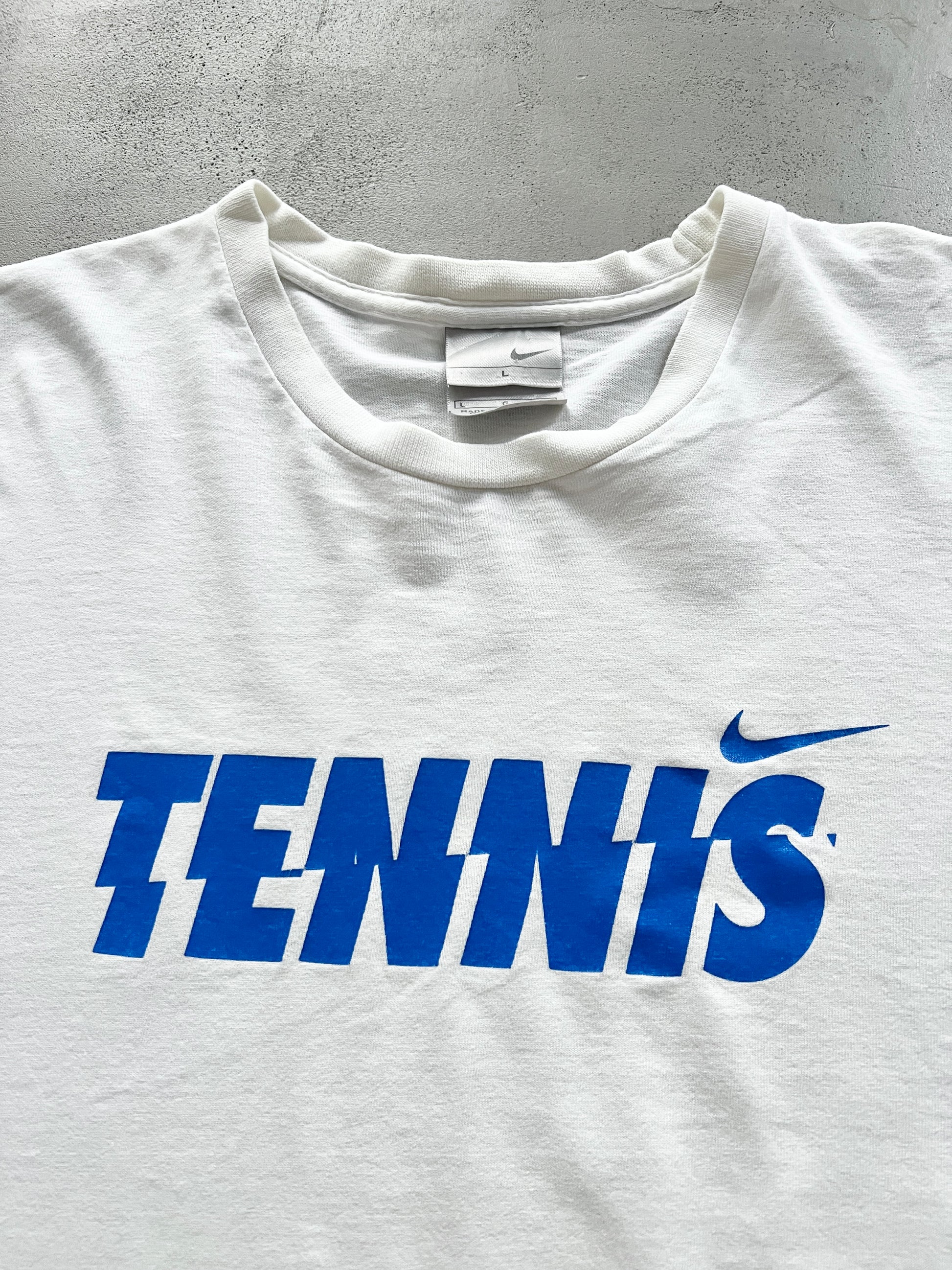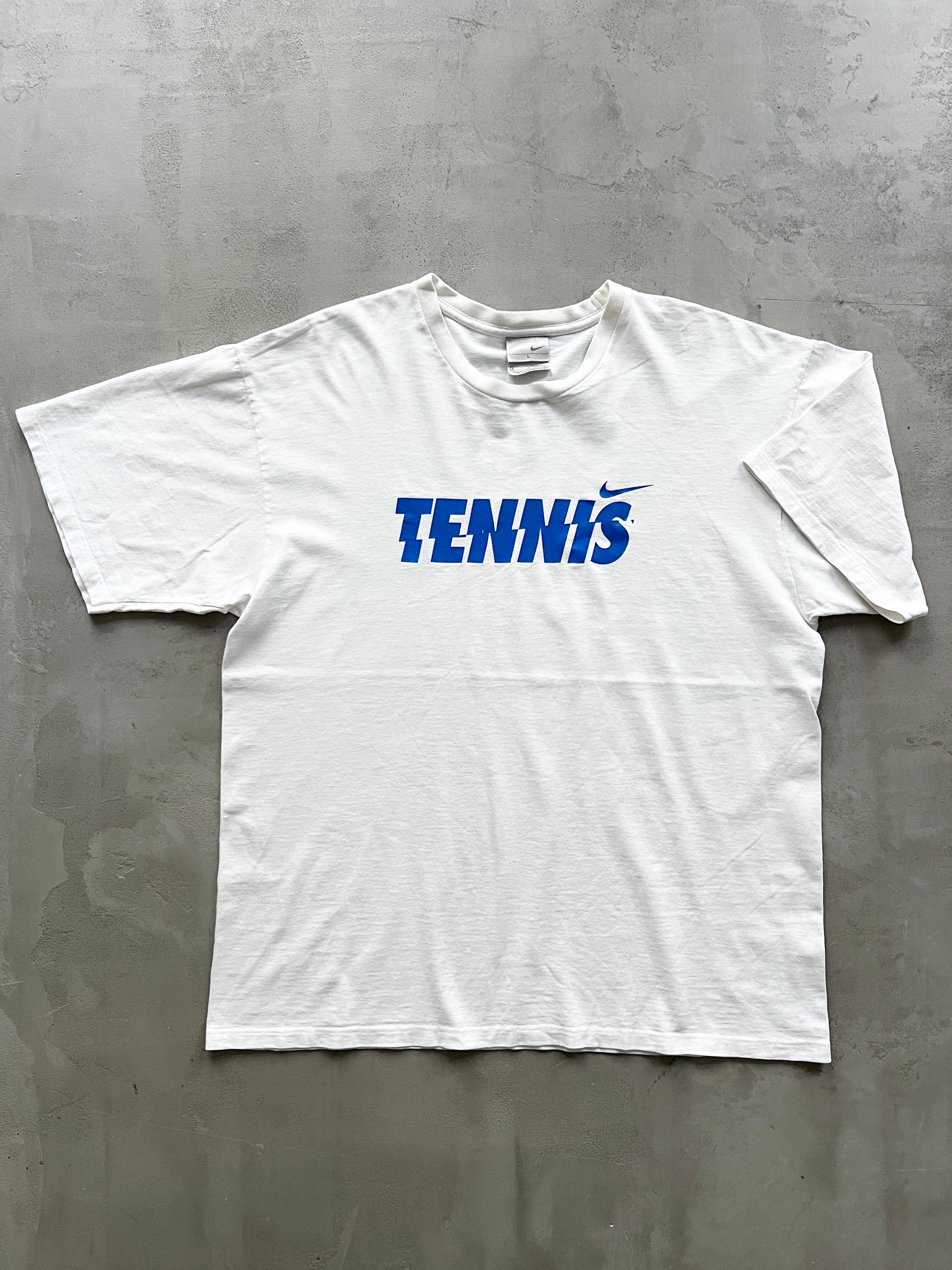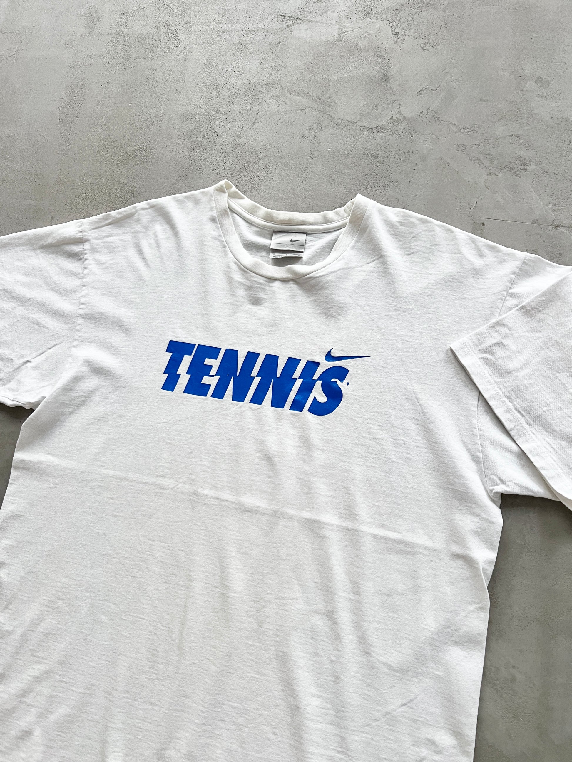 WHITE NIKE TENNIS TEE - 1990S - L