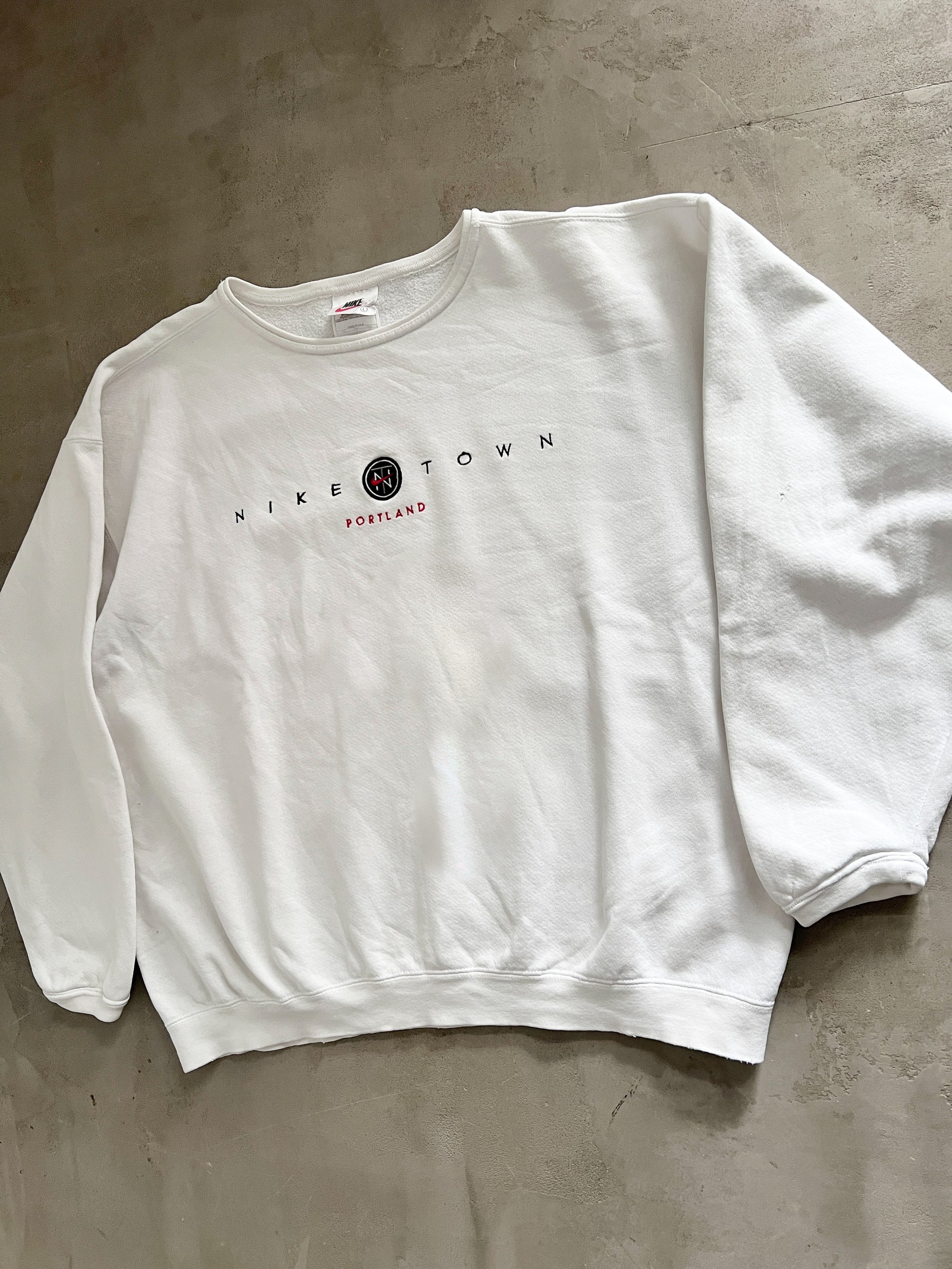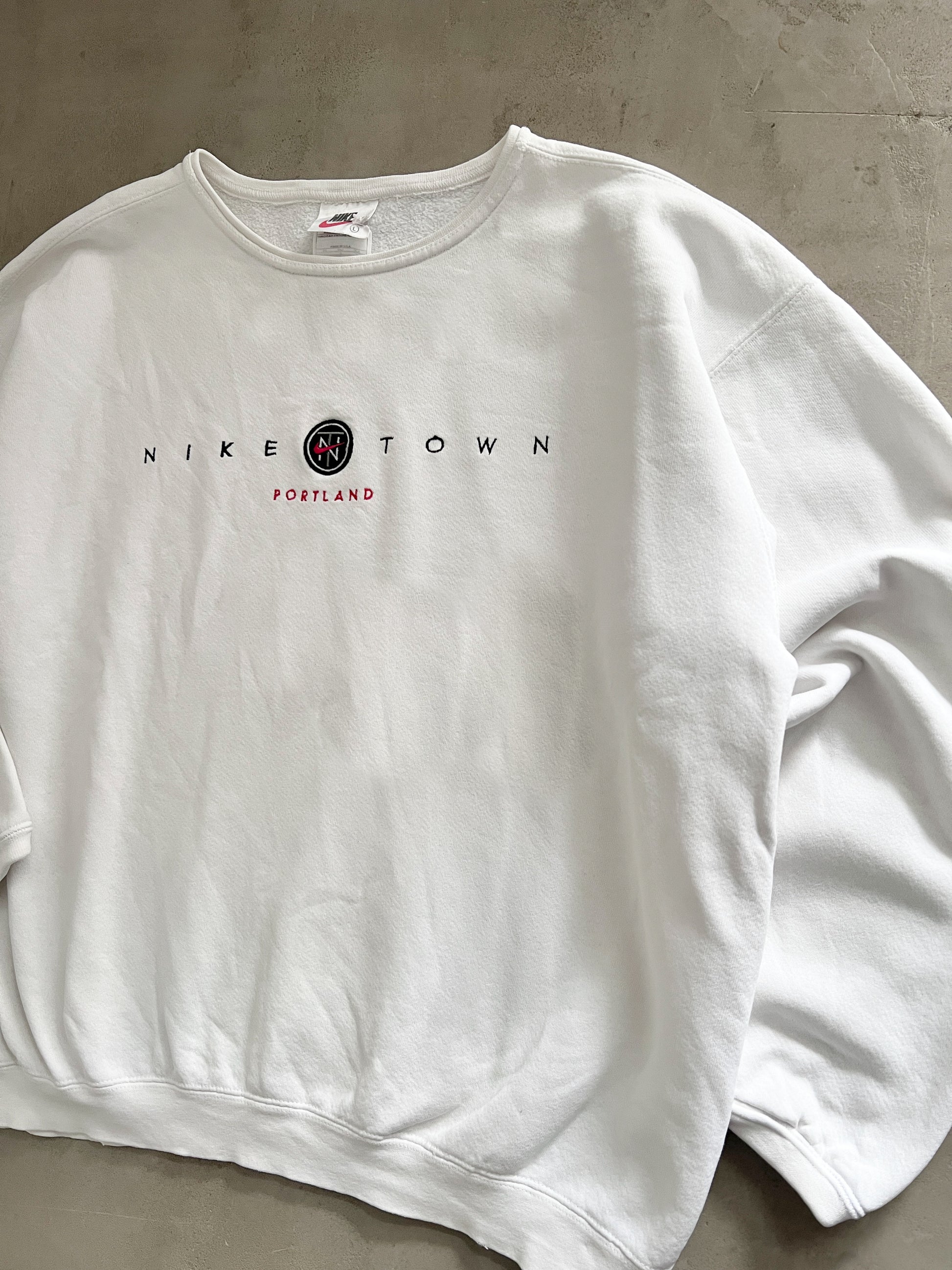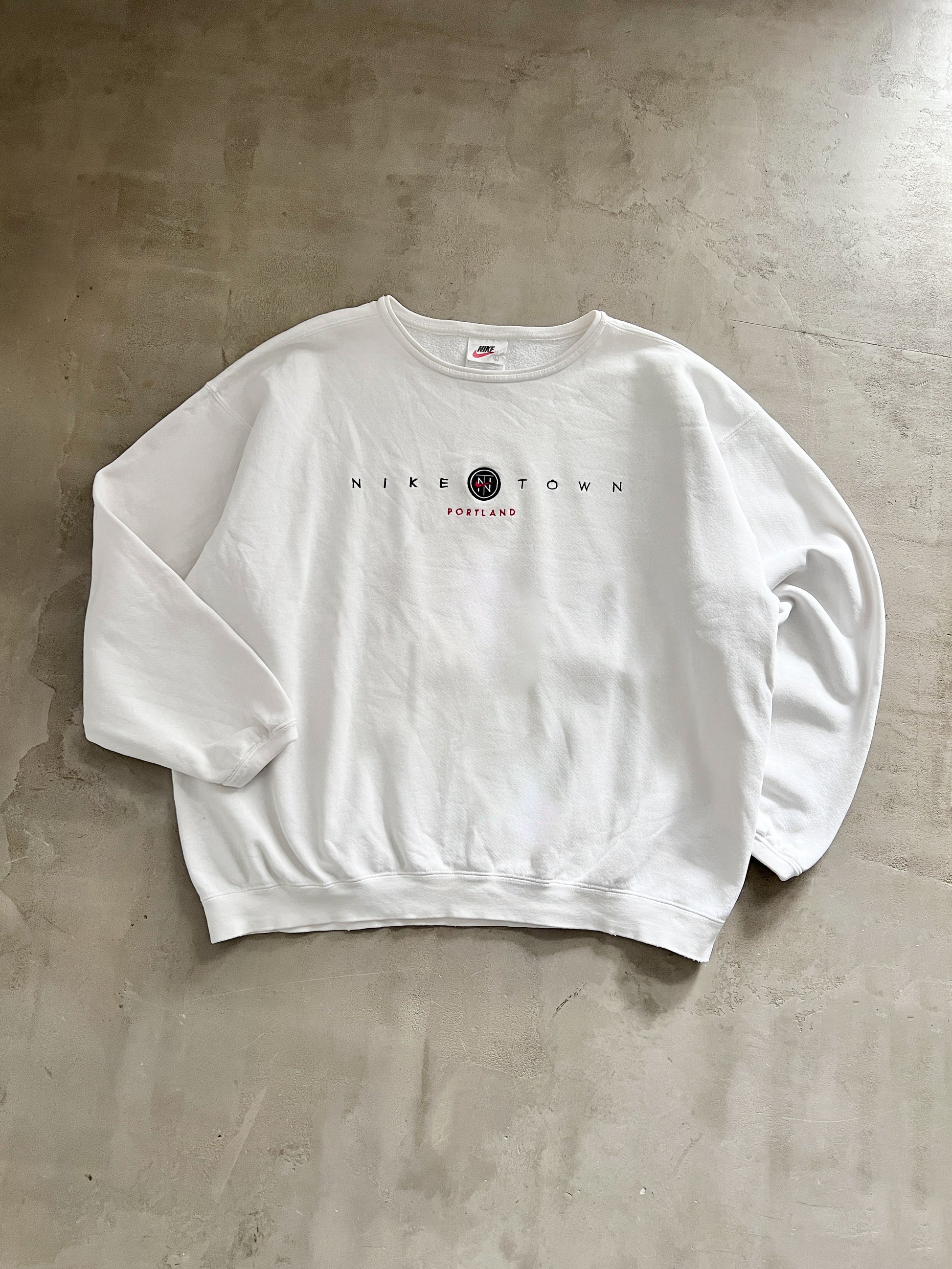 WHITE NIKE TOWN SWEATER - 1990S - L/M