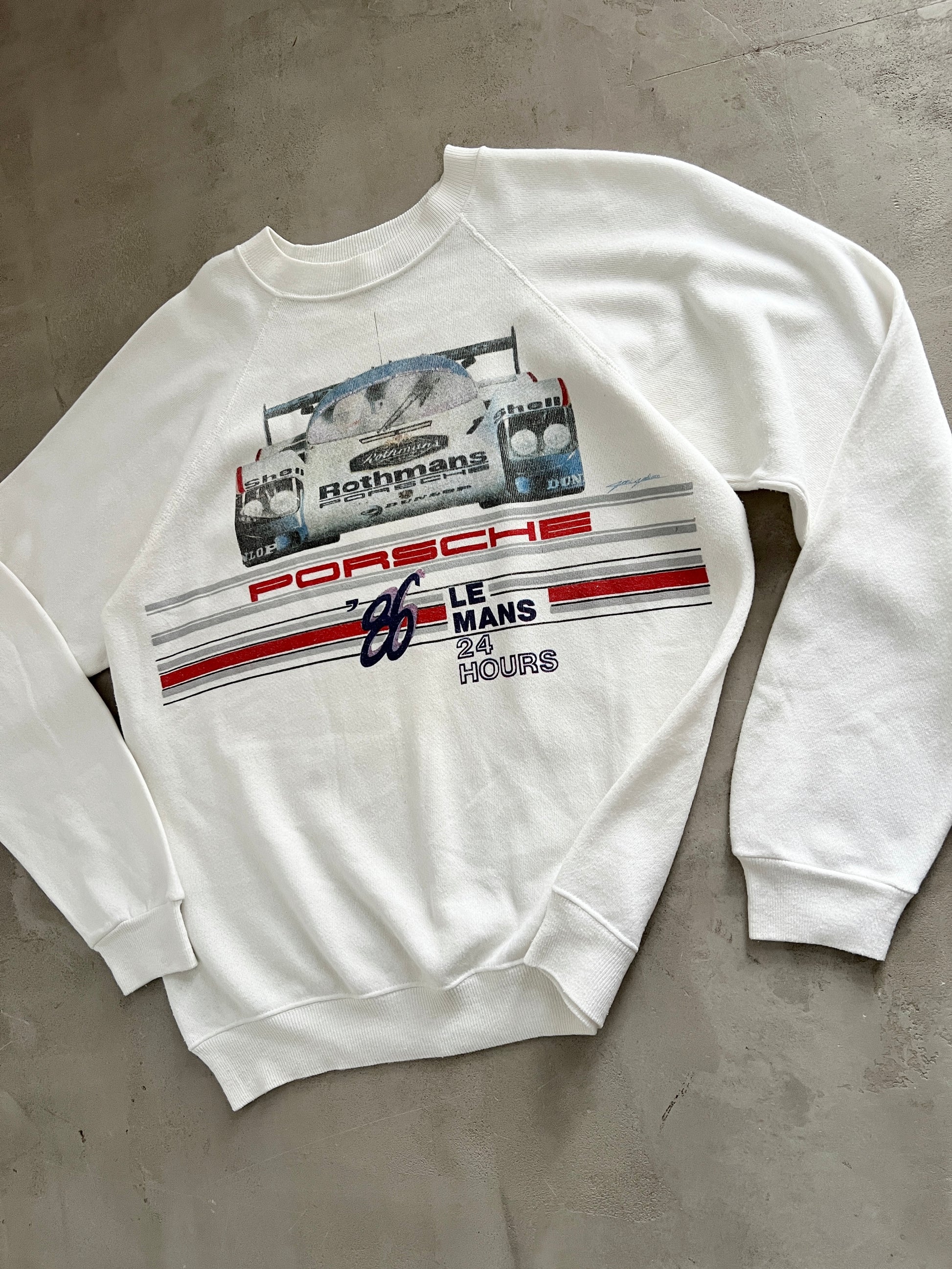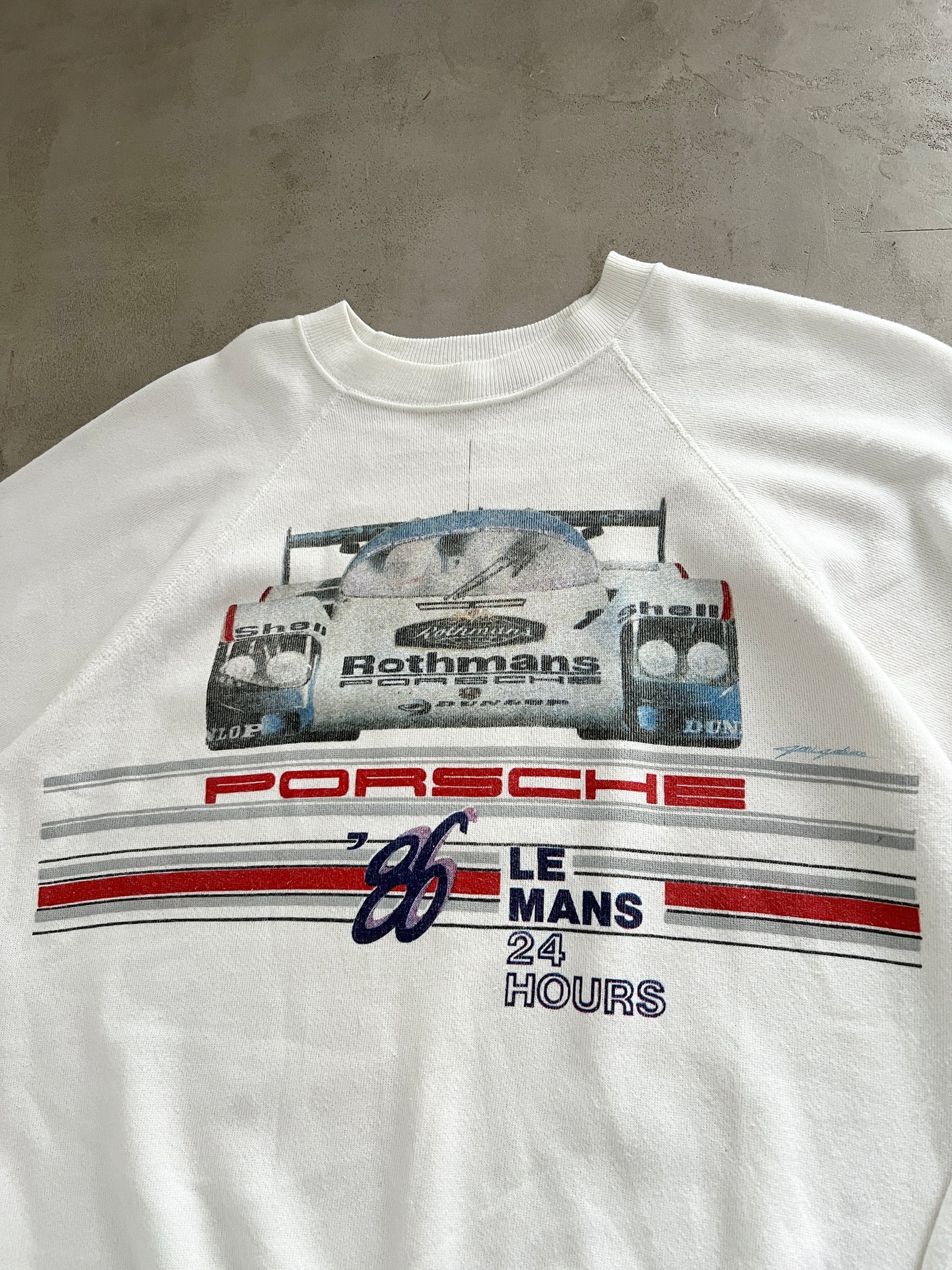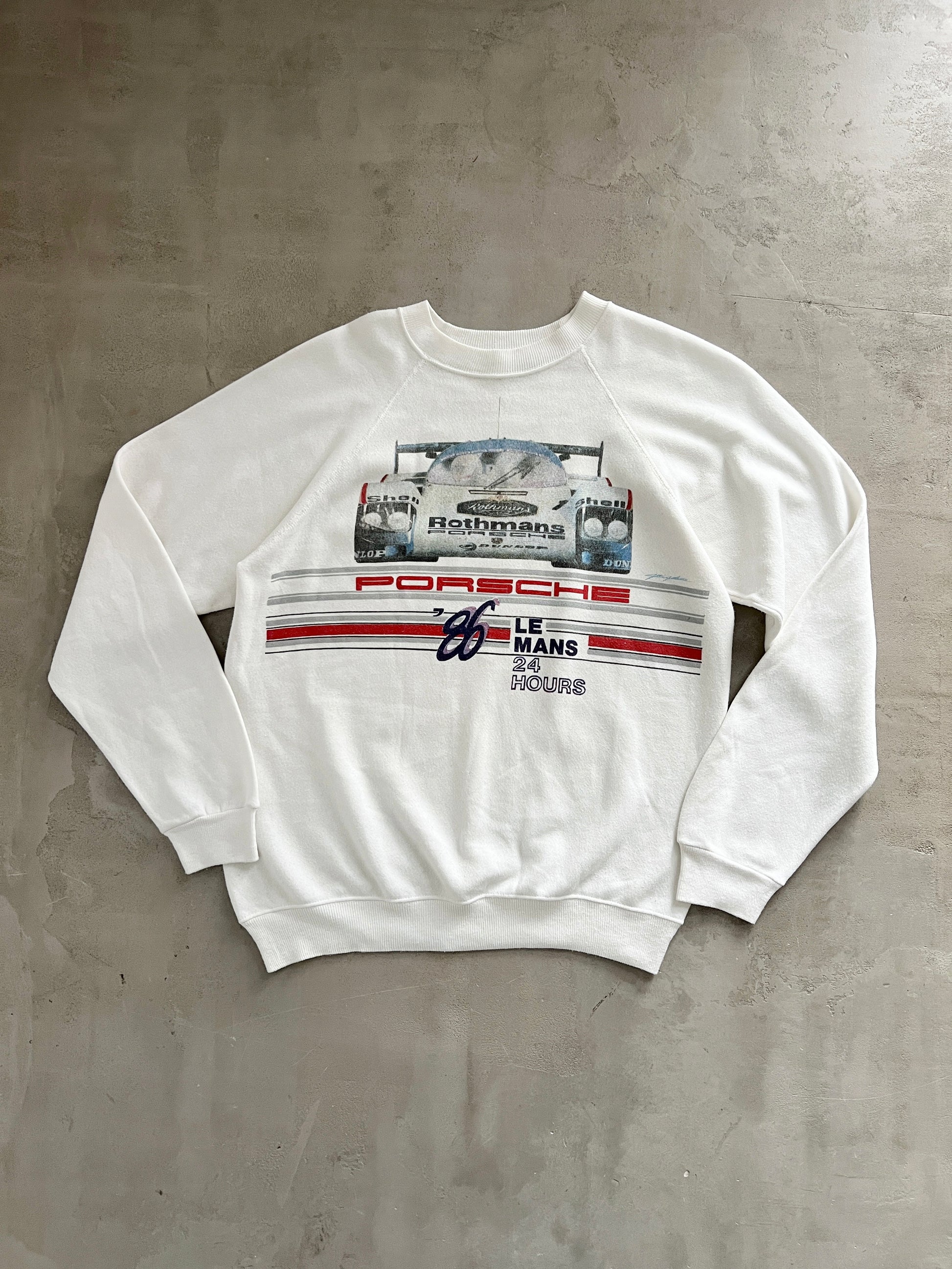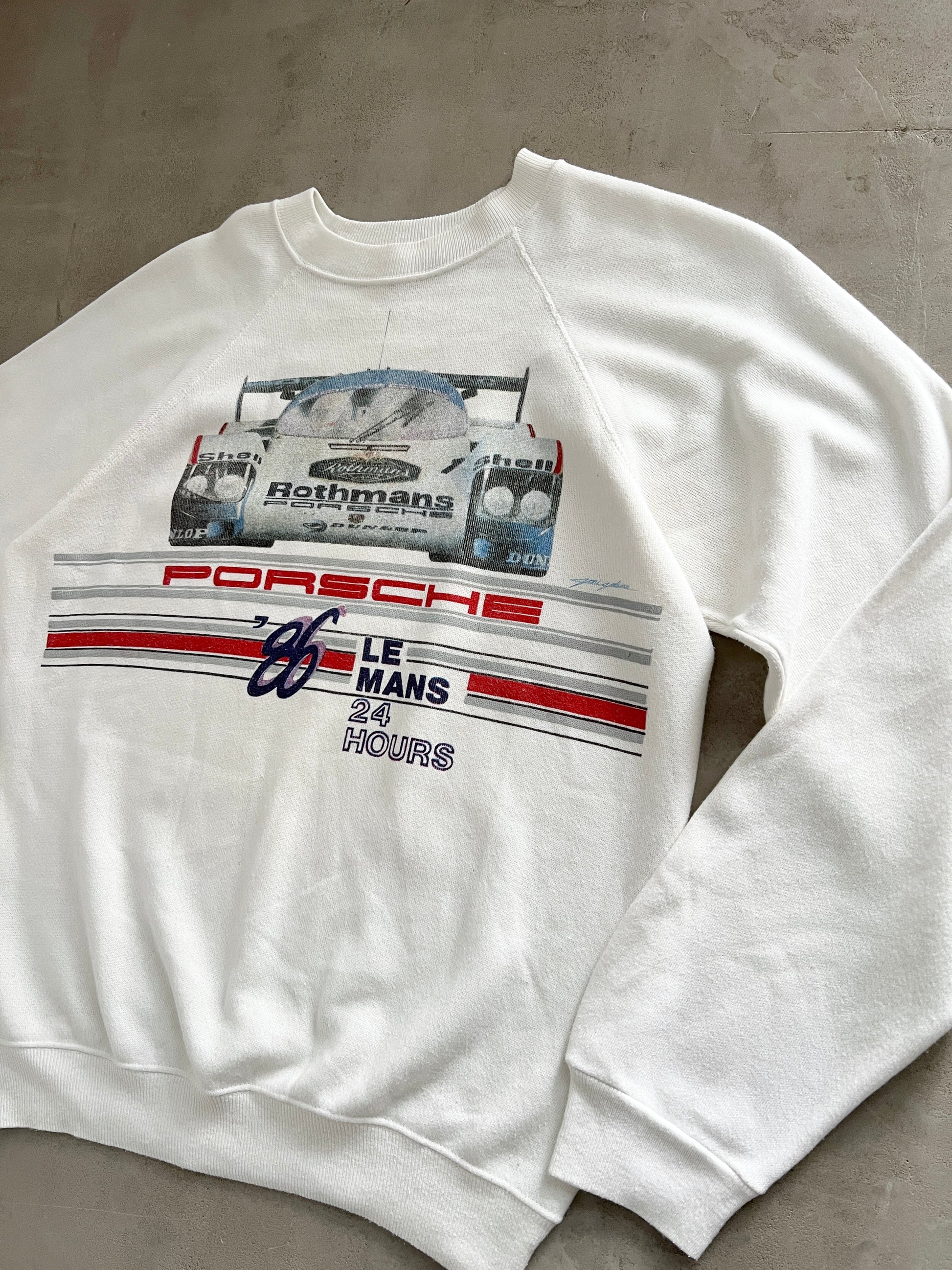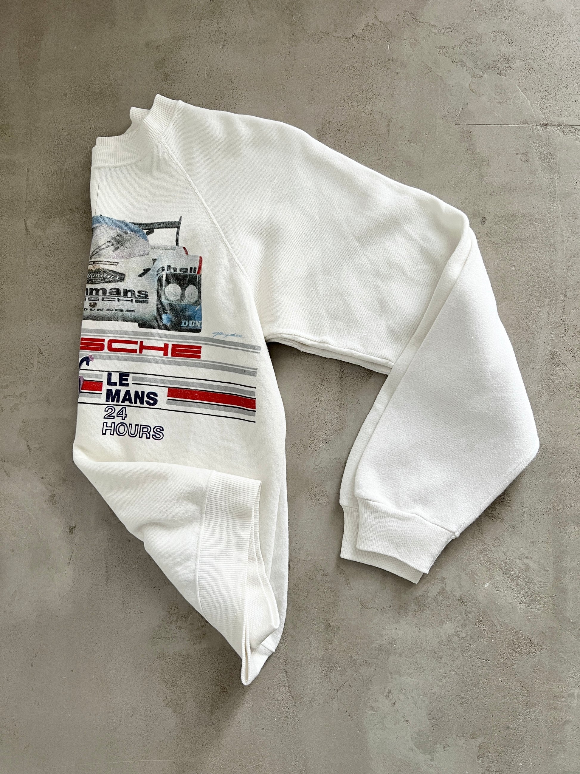 WHITE PORSCHE X LE MANS RACING SWEATER - 1980S - M/L